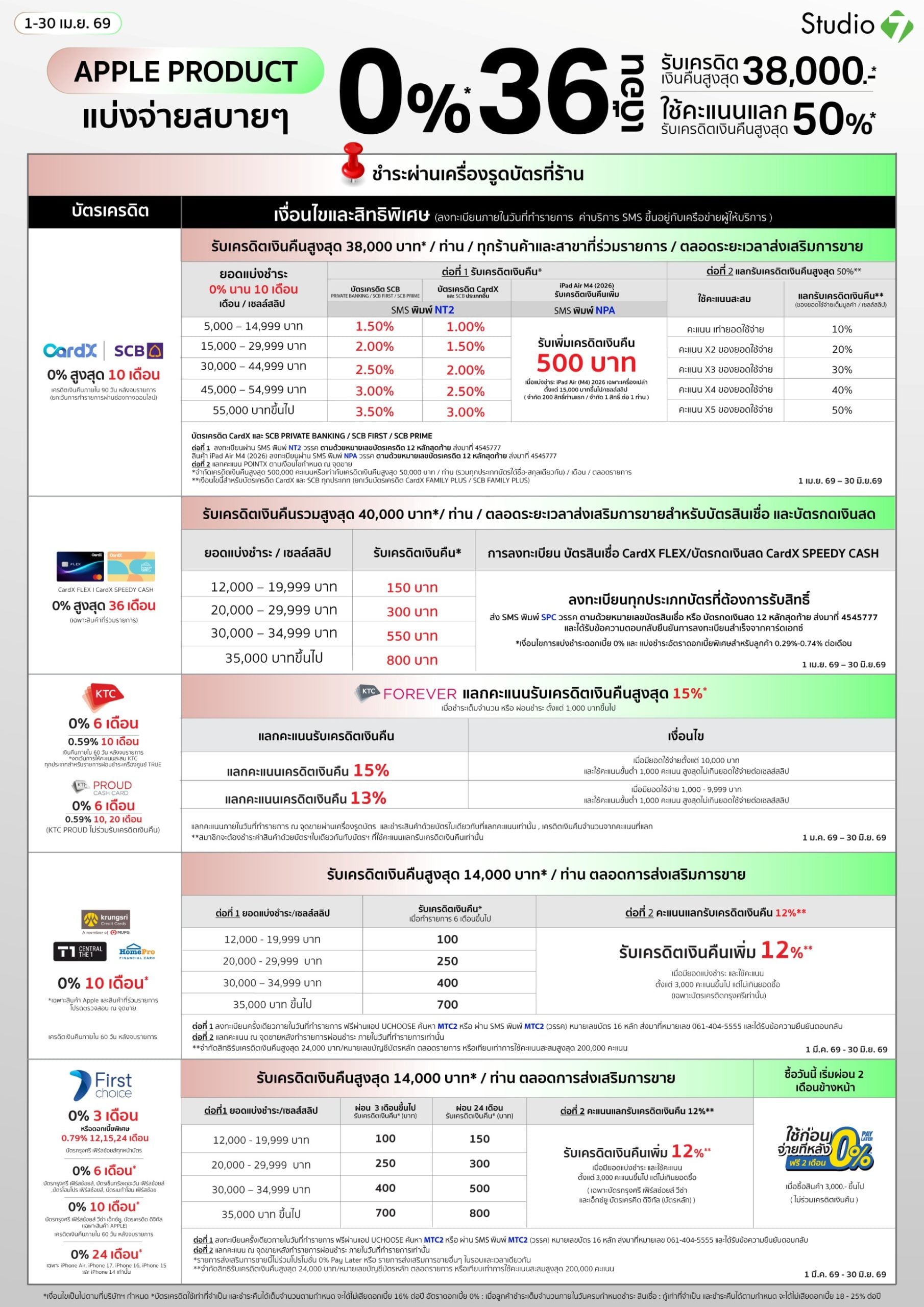 รวมโปรโมชันบัตรเครดิต สำหรับผ่อน iPhone, iPad, Apple Watch, MacBook ที่ร้าน Studio7