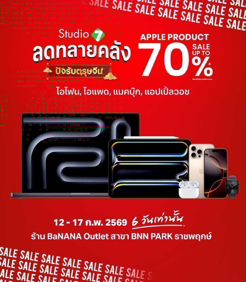 แล้วพบกันที่งาน Studio 7 ลดทลายคลัง 2026 ตั้งแต่วันที่ 12 – 17 ก.พ. 69 เวลา 10.00 – 19.00 น. ณ ร้าน BaNANA Outlet สาขา BNN Park ราชพฤกษ์ แผนที่คลิก>>