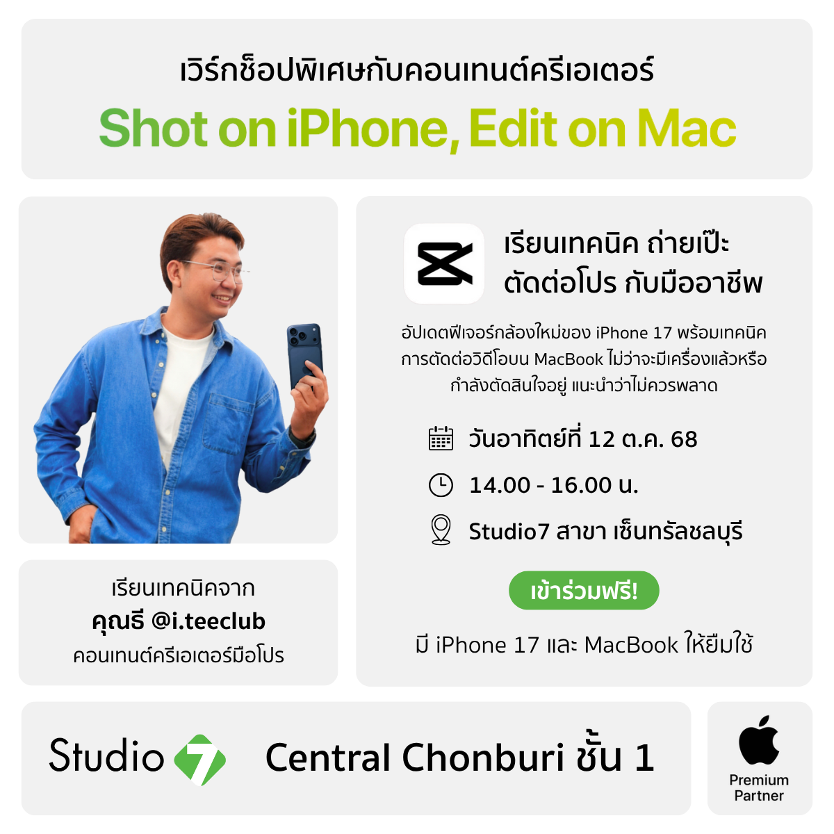 สนุกกับ Workshop ถ่ายด้วย iPhone ตัดต่อบน Mac : เปลี่ยนวิดีโอคอนเทนต์ธรรมดา ให้กลายเป็นงานระดับโปร ลงทะเบียนฟรี>