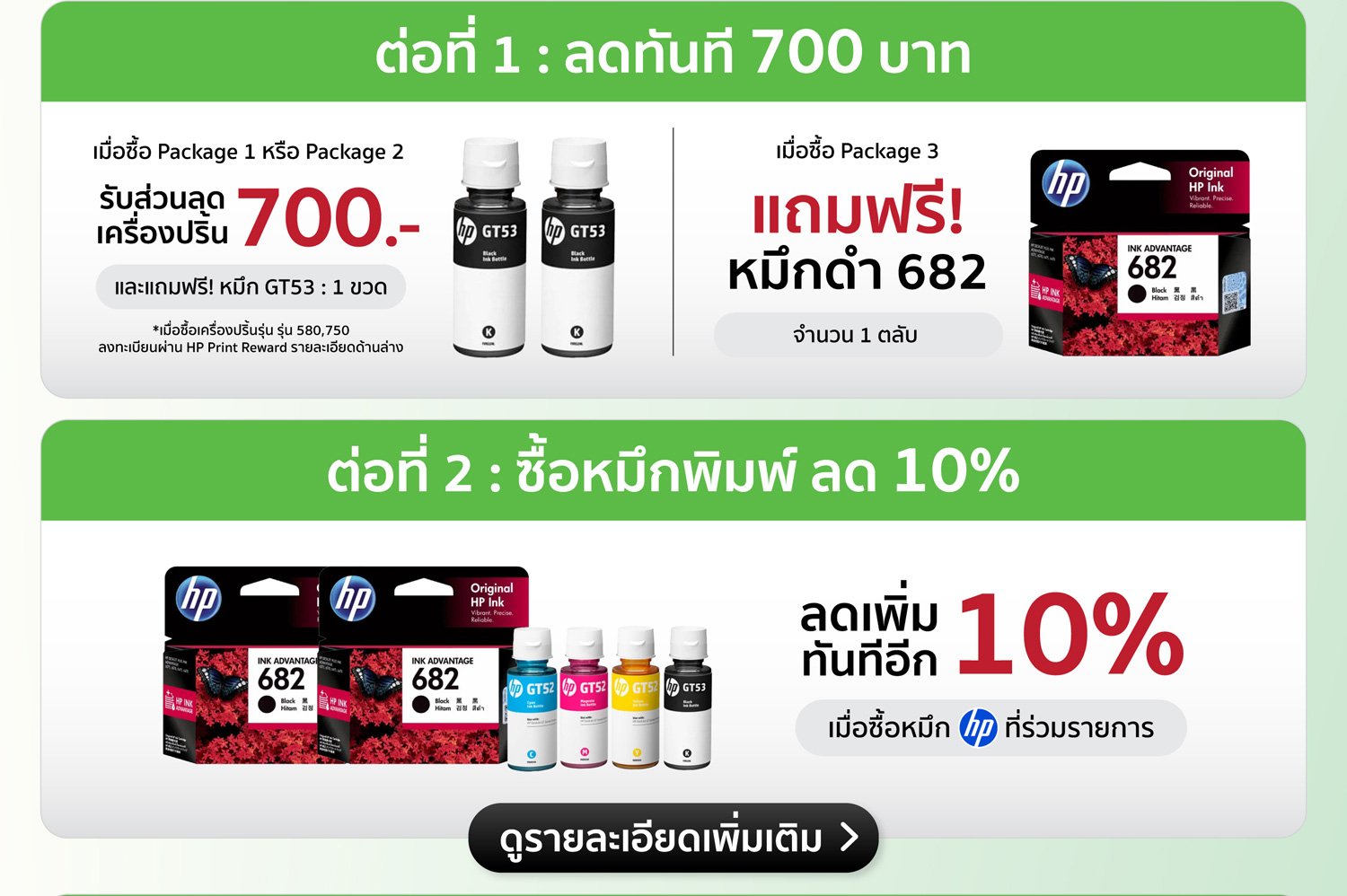 ต่อที่ 1: รับส่วนลดทันที 700 บาท เมื่อซื้อเครื่องปริ้น HP รุ่นที่ร่วมรายการ