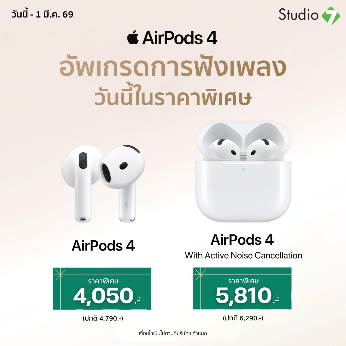 - AirPods 4 with active noise cancellation ราคา 5,810 บาท