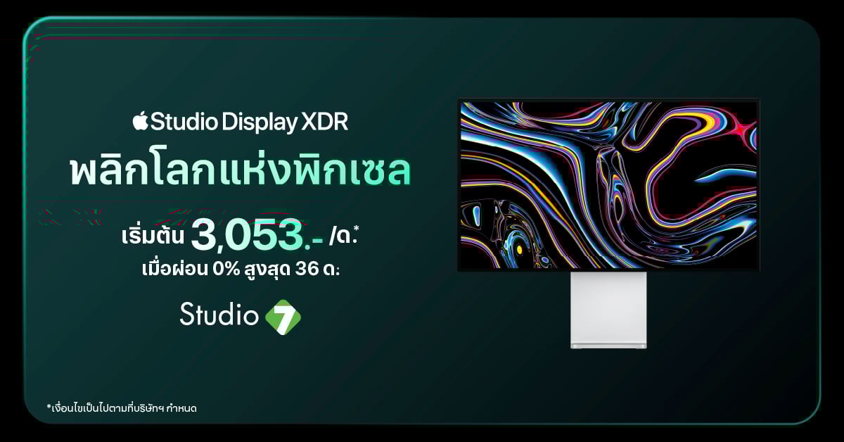 Studio Display XDR เริ่มเพียง 3,053 บาท/เดือน.-*