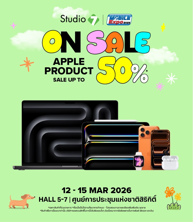 สาวก Apple ห้ามพลาด! ลดแรงแซงทุกงาน ที่ Studio 7 On Sale 2026 @Thailand Mobile EXPO สินค้า Apple ลดสูงสุด 50%*
