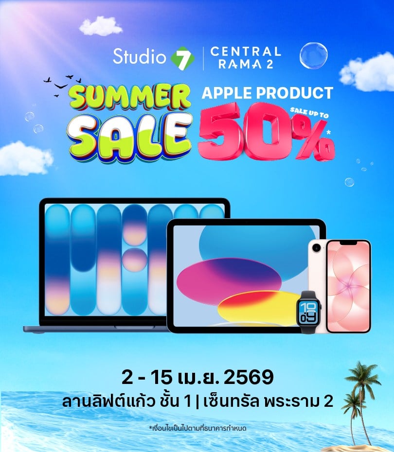ð āļĢāđāļāļāļāļĩāđāļāđāļāļāļŠāļēāļāđāļāļĢ āļāļąāļāļāļēāļ Studio7 SUMMER SALE āļāļĩāđ āđāļāđāļāļāļĢāļąāļĨ āļāļĢāļ°āļĢāļēāļĄ 2 āļŠāļīāļāļāđāļē Apple āļĨāļāļŠāļđāļāļŠāļļāļ 50%*